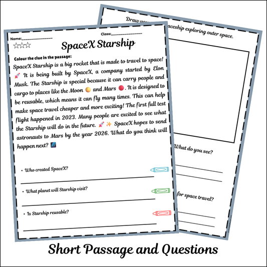 SpaceX Starship | Short Reading Comprehension Creative Worksheet