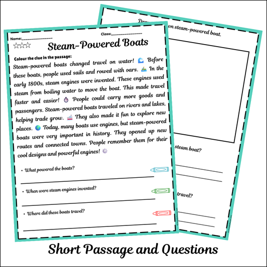 Steam-Powered Boats | Short Reading Comprehension Creative Worksheet