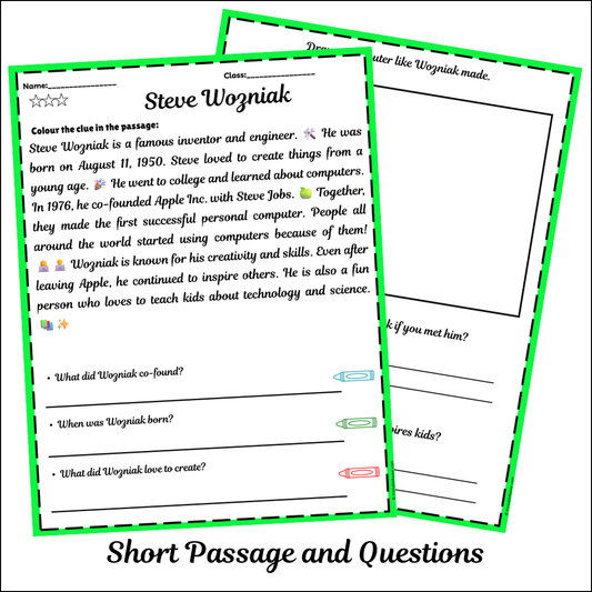 Steve Wozniak | Short Reading Comprehension Creative Worksheet