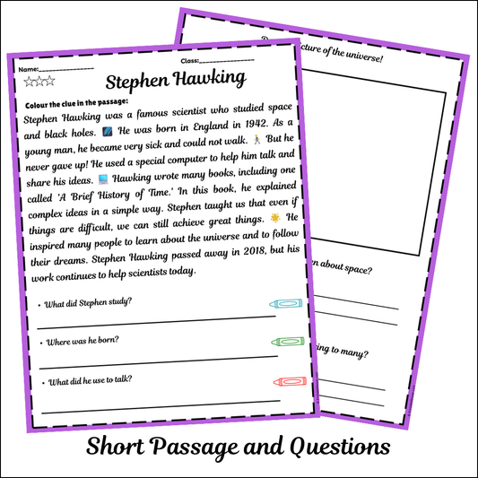 Stephen Hawking | Short Reading Comprehension Creative Worksheet