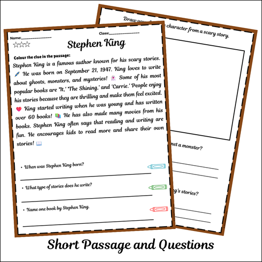 Stephen King | Short Reading Comprehension Creative Worksheet