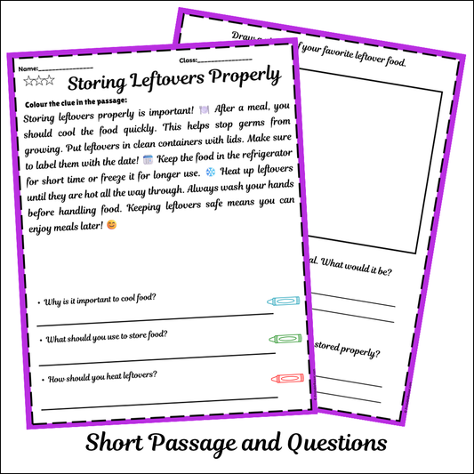 Storing Leftovers Properly | Short Reading Comprehension Creative Worksheet