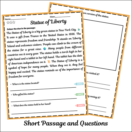Statue of Liberty | Short Reading Comprehension Creative Worksheet