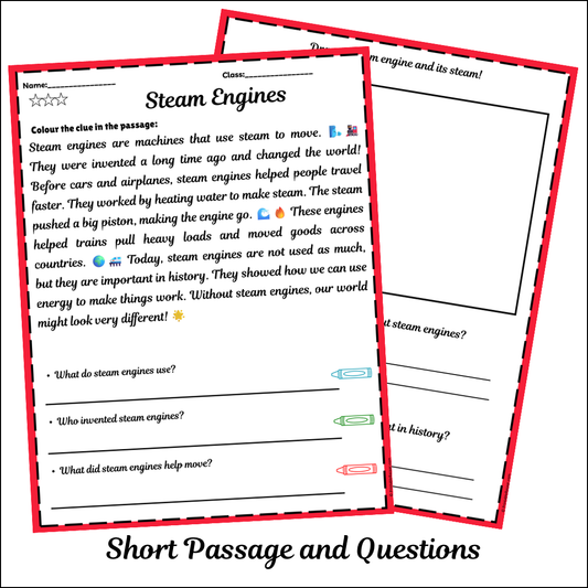 Steam Engines | Short Reading Comprehension Creative Worksheet