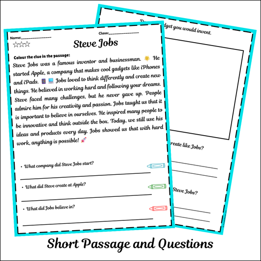 Steve Jobs | Short Reading Comprehension Creative Worksheet