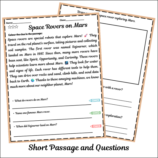 Space Rovers on Mars | Short Reading Comprehension Creative Worksheet