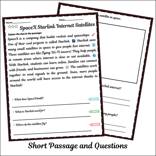 SpaceX Starlink Internet Satellites | Short Reading Comprehension Creative Worksheet