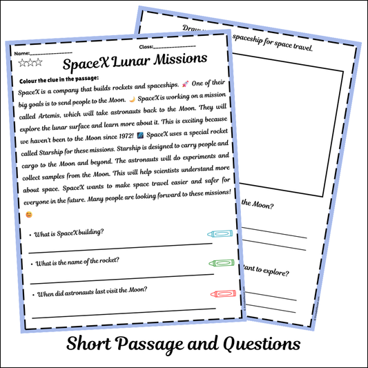 SpaceX Lunar Missions | Short Reading Comprehension Creative Worksheet