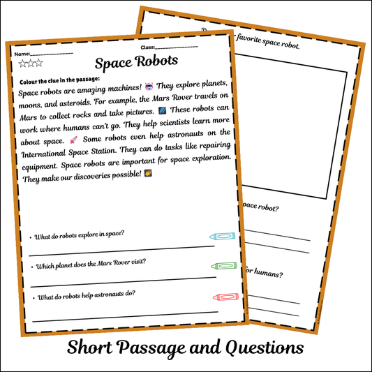Space Robots | Short Reading Comprehension Creative Worksheet