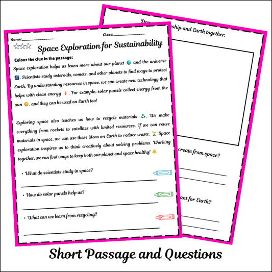 Space Exploration for Sustainability | Short Reading Comprehension Creative Worksheet