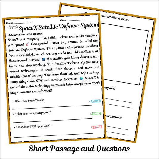SpaceX Satellite Defense System | Short Reading Comprehension Creative Worksheet