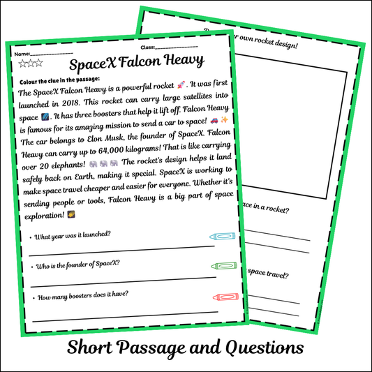 SpaceX Falcon Heavy | Short Reading Comprehension Creative Worksheet