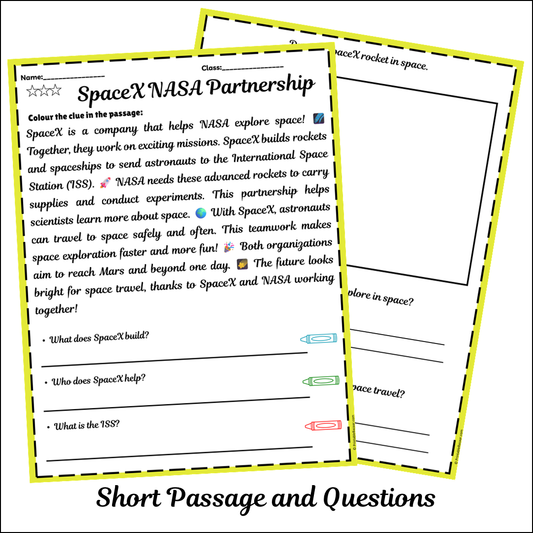 SpaceX NASA Partnership | Short Reading Comprehension Creative Worksheet