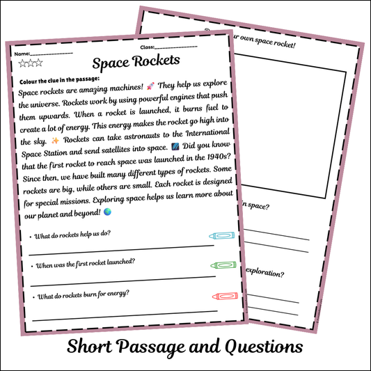 Space Rockets | Short Reading Comprehension Creative Worksheet