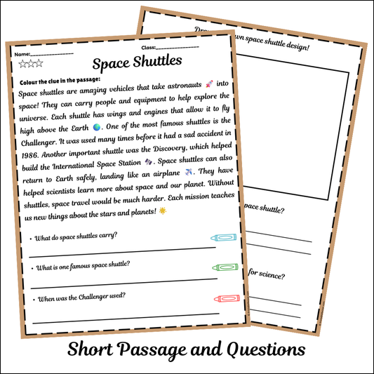 Space Shuttles | Short Reading Comprehension Creative Worksheet