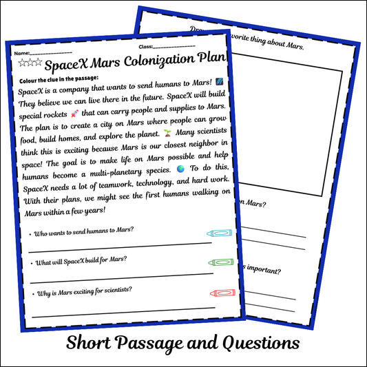 SpaceX Mars Colonization Plan | Short Reading Comprehension Creative Worksheet