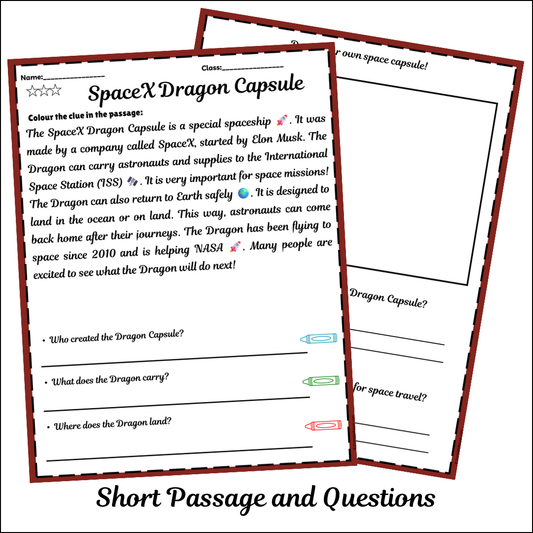 SpaceX Dragon Capsule | Short Reading Comprehension Creative Worksheet