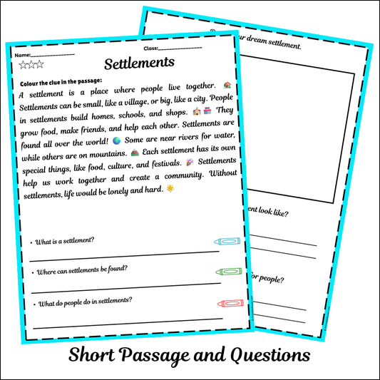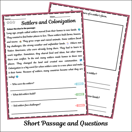 Settlers and Colonization | Short Reading Comprehension Creative Worksheet