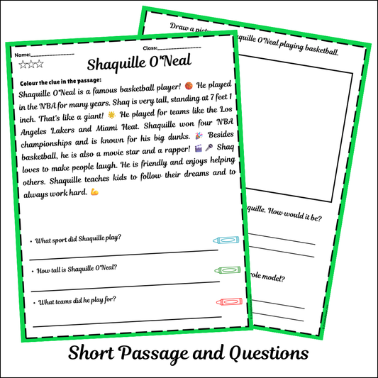 Shaquille O'Neal | Short Reading Comprehension Creative Worksheet