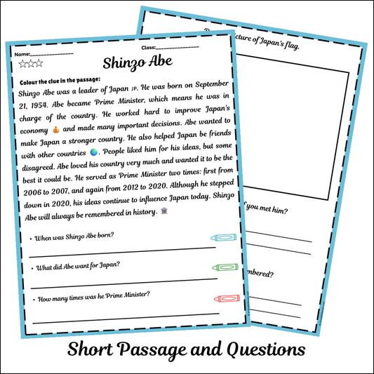 Shinzo Abe | Short Reading Comprehension Creative Worksheet