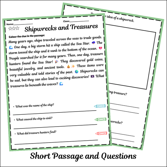 Shipwrecks and Treasures | Short Reading Comprehension Creative Worksheet