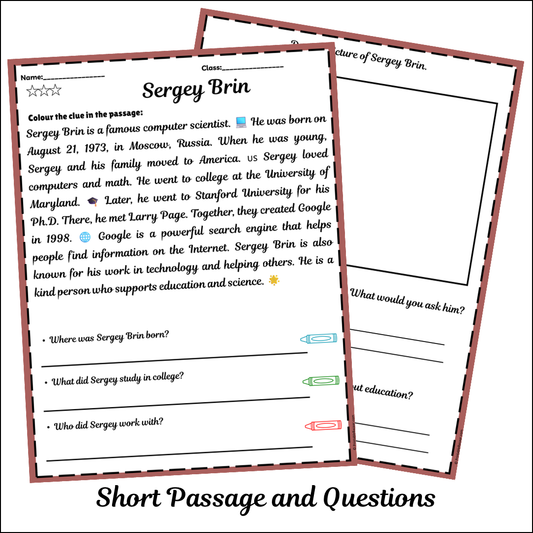 Sergey Brin | Short Reading Comprehension Creative Worksheet