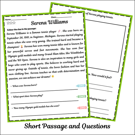 Serena Williams | Short Reading Comprehension Creative Worksheet