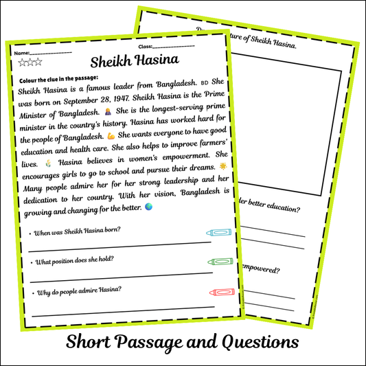 Sheikh Hasina | Short Reading Comprehension Creative Worksheet
