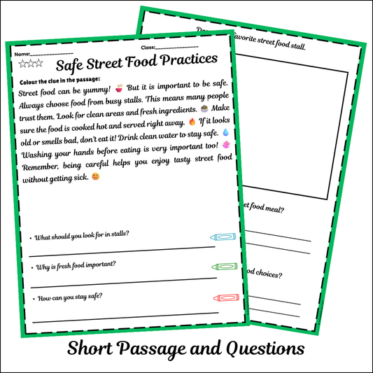 Safe Street Food Practices | Short Reading Comprehension Creative Worksheet