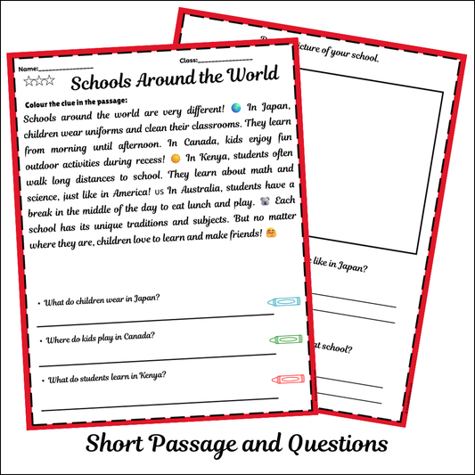 Schools Around the World | Short Reading Comprehension Creative Worksheet