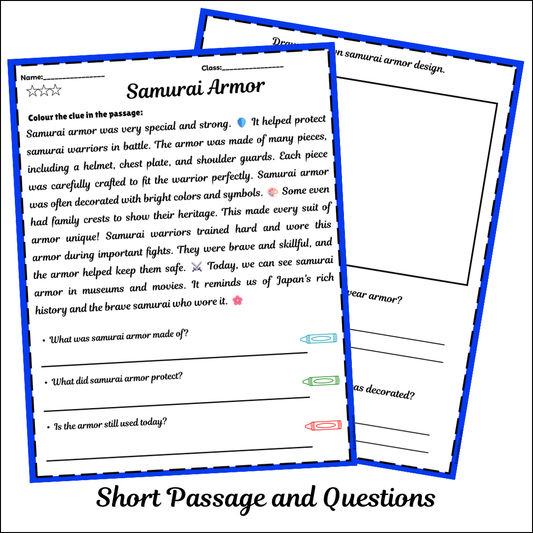 Samurai Armor | Short Reading Comprehension Creative Worksheet
