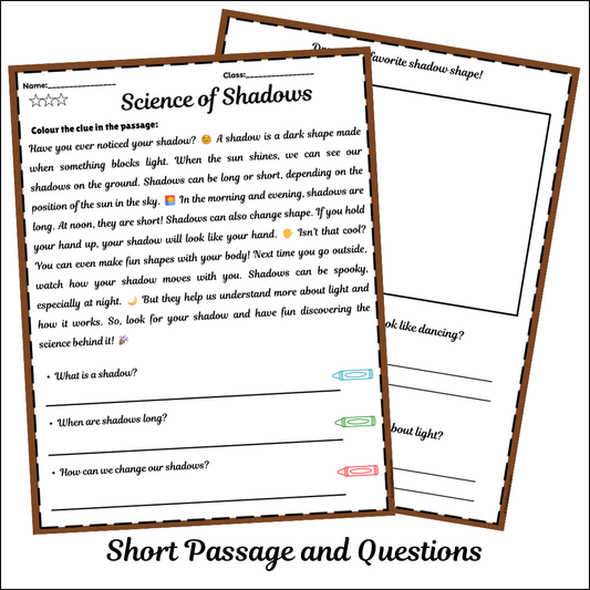 Science of Shadows | Short Reading Comprehension Creative Worksheet
