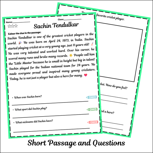 Sachin Tendulkar | Short Reading Comprehension Creative Worksheet