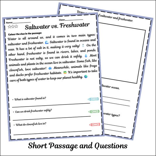 Saltwater vs. Freshwater | Short Reading Comprehension Creative Worksheet