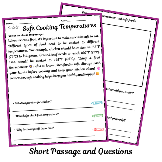 Safe Cooking Temperatures | Short Reading Comprehension Creative Worksheet