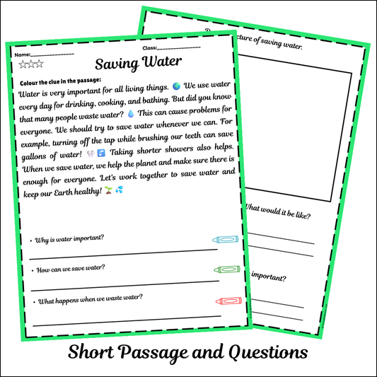 Saving Water | Short Reading Comprehension Creative Worksheet