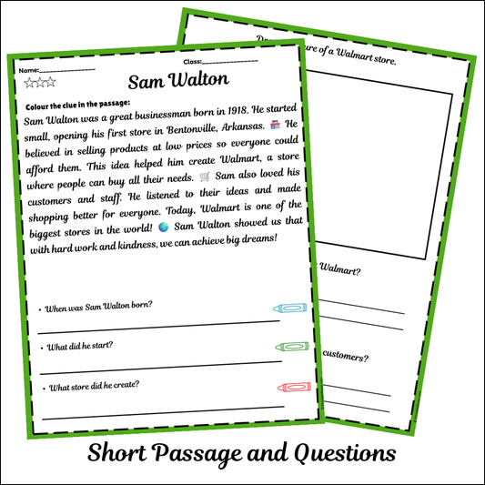 Sam Walton | Short Reading Comprehension Creative Worksheet