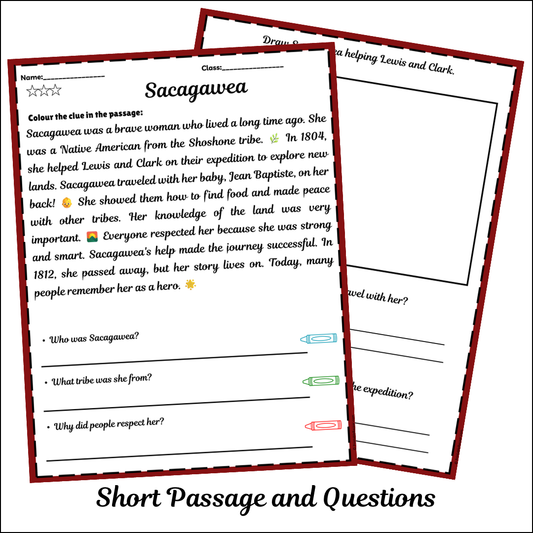 Sacagawea | Short Reading Comprehension Creative Worksheet