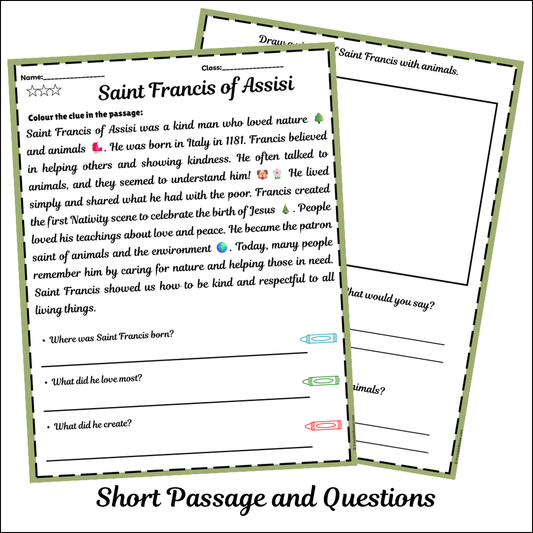 Saint Francis of Assisi | Short Reading Comprehension Creative Worksheet