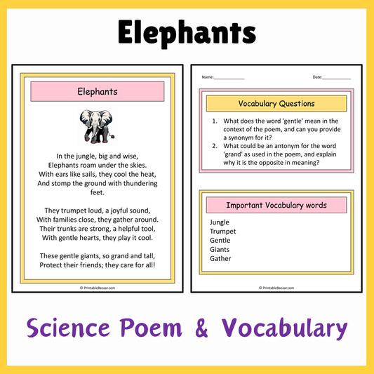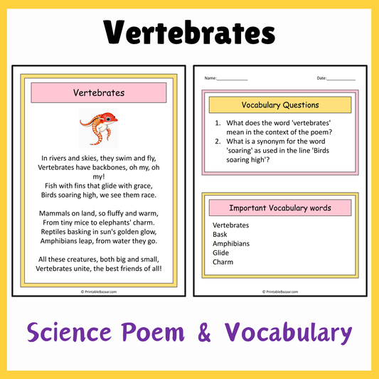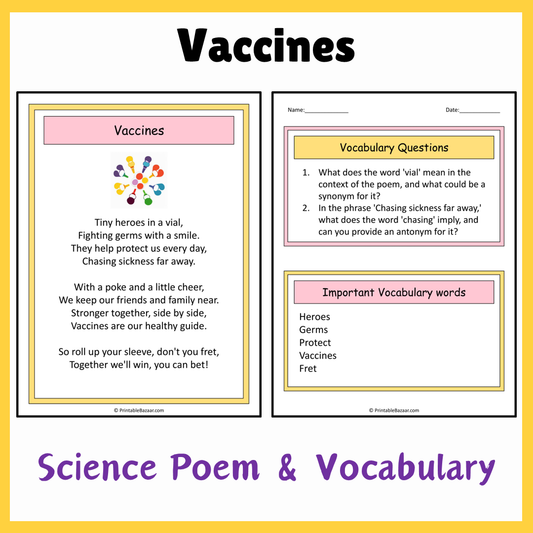Vitamins and Minerals | Science Poem Reading Comprehension Activity