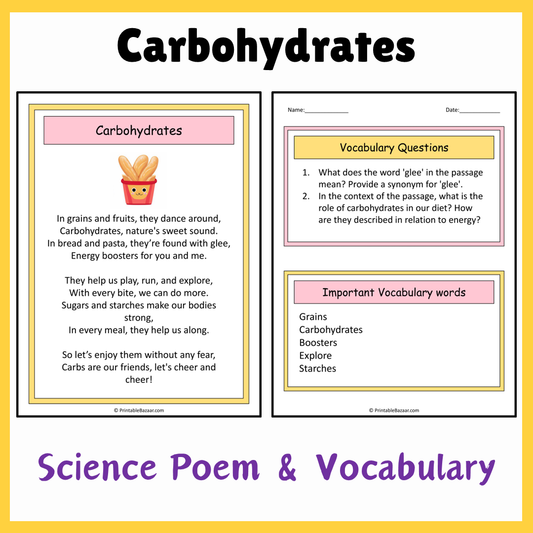 Carbohydrates | Science Poem Reading Comprehension Activity
