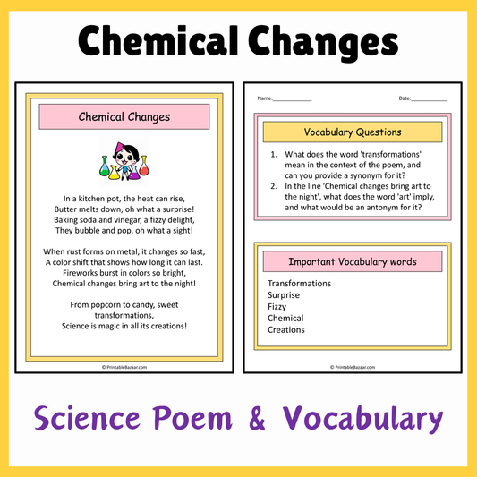 Chemical Changes | Science Poem Reading Comprehension Activity