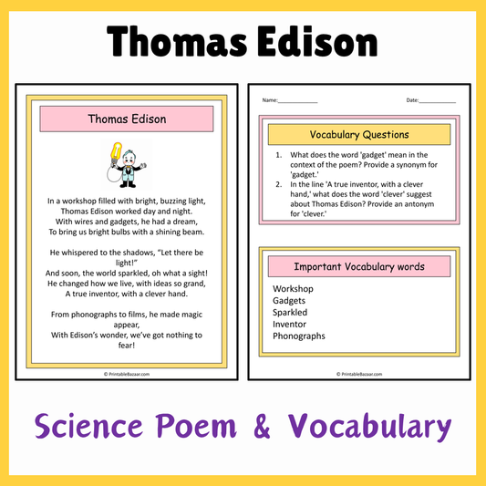 Thomas Edison | Science Poem Reading Comprehension Activity