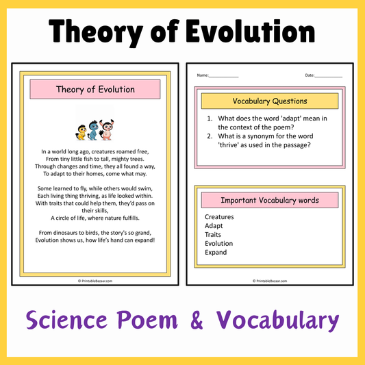 Theory of Evolution | Science Poem Reading Comprehension Activity
