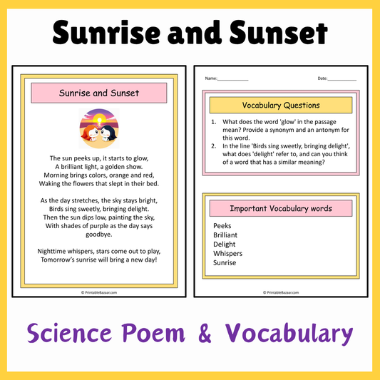 Sunrise and Sunset | Science Poem Reading Comprehension Activity
