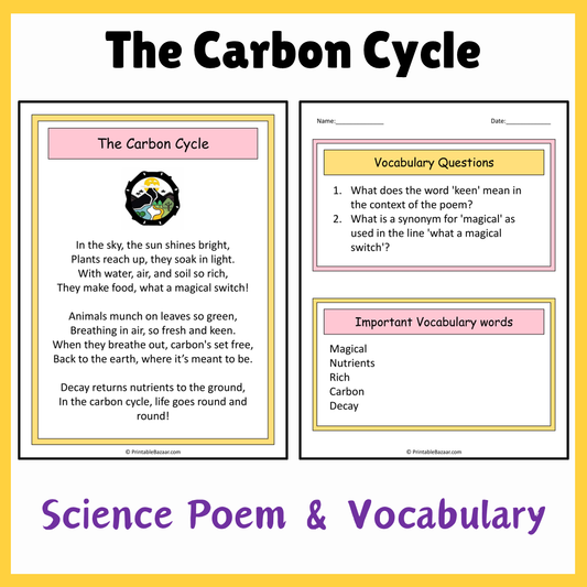 The Carbon Cycle | Science Poem Reading Comprehension Activity