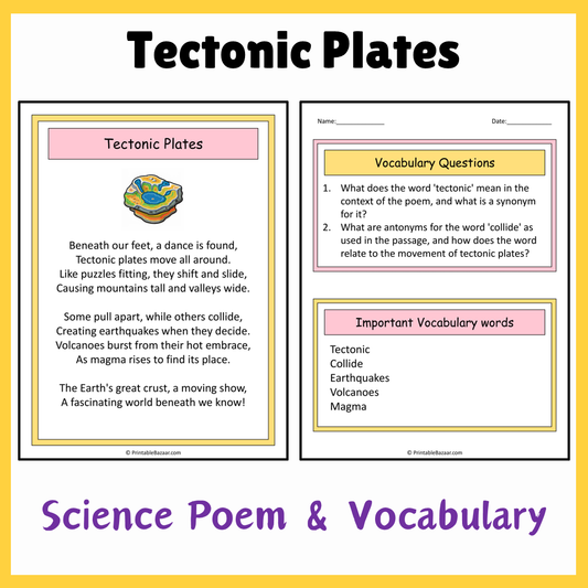 Tectonic Plates | Science Poem Reading Comprehension Activity