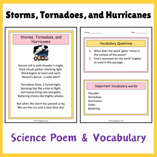 Storms, Tornadoes, and Hurricanes | Science Poem Reading Comprehension Activity