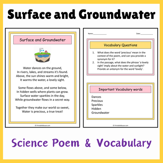 Surface and Groundwater | Science Poem Reading Comprehension Activity