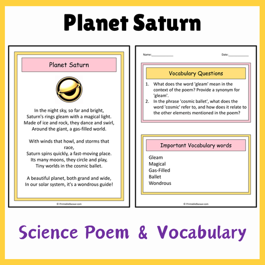 Planet Saturn | Science Poem Reading Comprehension Activity